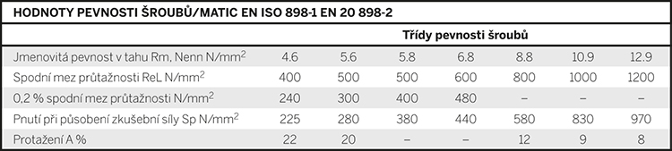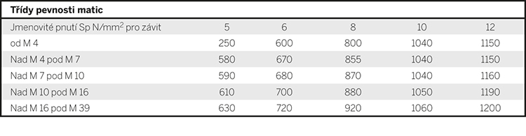 – zkušební pnutí se rovná minimální pevnosti v tahu v N/mm2 šroubu, který po spojení s vhodnou maticí lze zatížit až na minimální mez průtažnost šroubu.