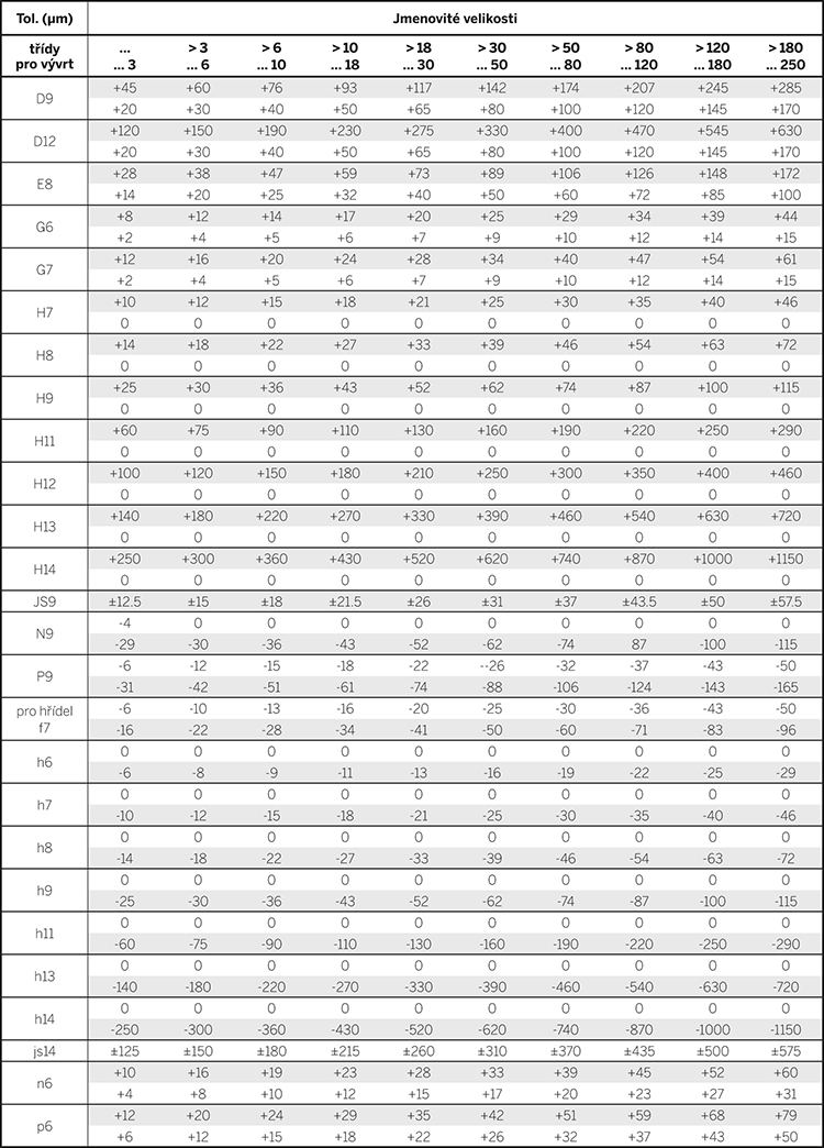 Rozsah tolerance H je nejběžnější hodnotou pro vývrty. Udává, že minimální rozměr vývrtu odpovídá jmenovitým rozměrům.