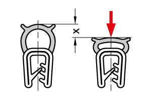 V ideálním případě by ochranné těsnící profily měly udržovat deformaci x přibližně 30 - 50% maximální hodnoty, aby se zajistilo spolehlivé utěsnění. Deformace nad 50 % může narušit spolehlivost těsnění a snížit pružnost těsnícího materiálu v důsledku plastické deformace.
