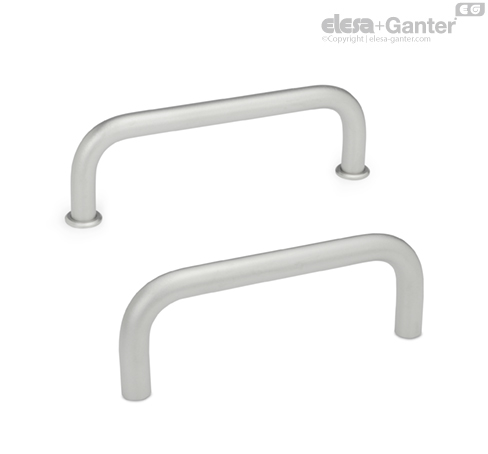 Bügelgriffe GN 425 sind aus gebogenem Edelstahl-,Stahl-, oder Aluminiumprofil hergestellt. Bügelgriffe mit Ø d1 = 6, 8 und 10 werden serienmäßig mit zwei Auflagescheiben geliefert und sichern so eine einwandfreie Auflage des Griffes auch bei großen Anschlussbohrungen. Die Scheiben sind lose beigelegt.