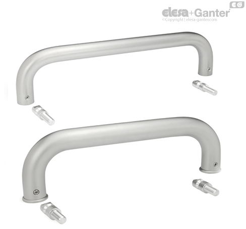 Bügelgriffe GN 426.5 können sowohl von der Rückseite (Form A) als auch von der Bedienseite (Form B) her montiert werden. In diesem Falle wird zunächst der Montagebolzen maschinenseitig eingeschraubt, dann der Griff aufgesteckt und seitlich mit dem Gewindestift gesichert.