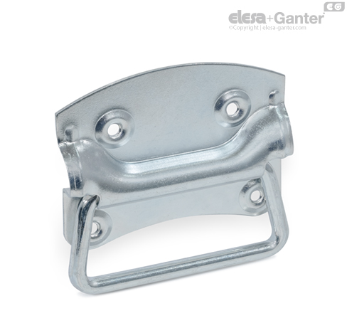 Klappgriffe GN 3136 ermöglichen das Ausziehen von Schubladen oder das Anheben von Kisten und Behältern. Der schwenkbare Griffbügel schlägt beim Verwenden bei etwa 90° am Blechgehäuse an und fällt danach per Schwerkraft wieder in seine Ruhestellung zurück.