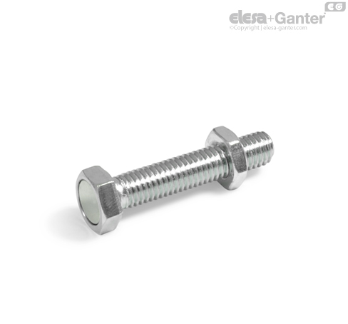 Anschlagschrauben GN 251.6 mit Haltemagnet bilden in Kombination mit dem Stahlgehäuse in Form einer Sechskantschraube ein System, welches den Magnet schirmt, verstärkt und den magnetischen Fluss optimal auf die Haftfläche umleitet.