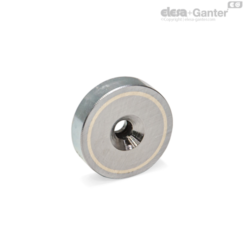 Flachtopfmagnete GN 58 bilden in Kombination mit dem Stahlgehäuse und der Isolation aus Messing / Aluminium ein System, welches den Magnet schirmt, verstärkt und den magnetischen Fluss optimal auf die Haftfläche umleitet