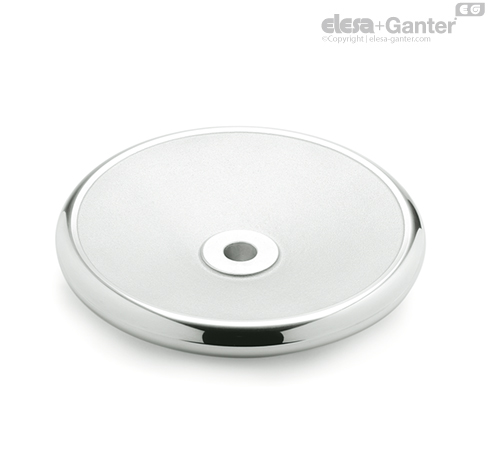 Scheibenhandräder DIN 3670 werden in der Regel in der Ausführung ,,ohne Griff’’ verwendet, die Rückseite ist mit Griffmulden versehen. Der Radkranz ist jedoch so ausgebildet, dass die Montage eines Griffes möglich ist.