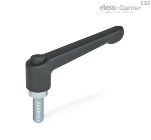 Verstellbare Hebel GN 303.2 sind vorzugsweise dann einzusetzen, wenn der Spannbereich begrenzt oder eine bestimmte Spannstellung erwünscht ist. Der mittige Einsatz ist mit dem Spannhebel verzahnt und leicht zu lösen.