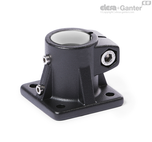 Fuß-Verfahrschlitten GN 163.1 basieren auf Fuß-Klemmverbindern. Durch zusätzlich eingebrachte Befestigungsbohrungen wird die Verbindung zum Mitnehmer einer Lineareinheit hergestellt. Bohrungen mit der Bezeichung G sind mit Gleiteinsätzen ausgestattet.