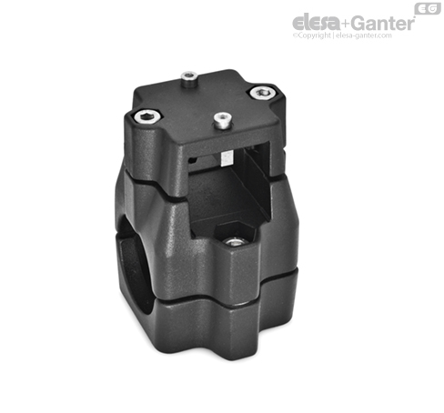 Kreuz-Verfahrschlitten GN 135.1 basieren auf Kreuz-Klemmverbindern. Durch zusätzlich eingebrachte Befestigungsbohrungen wird die Verbindung zum Mitnehmer einer Lineareinheit hergestellt.