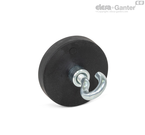 Haltemagnete GN 51.10 mit Gummiummantelung bilden im Verbund mit dem Stahlteil ein System, welches den Magnet schirmt, verstärkt und den magnetischen Fluss optimal auf die gummierte Haftfläche konzentriert.