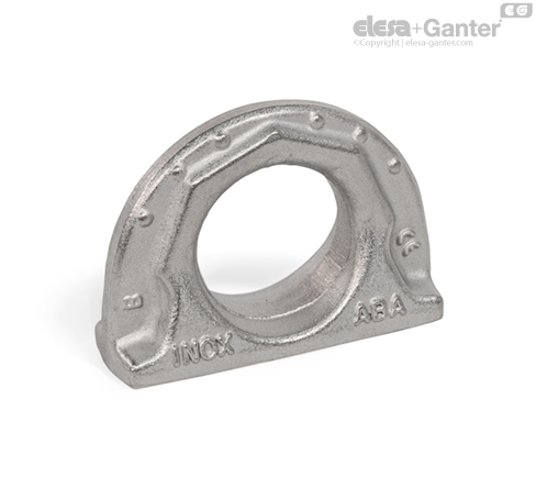 Anschlagpunkte GN 589.5 sind zum Einhängen von Anschlagmitteln und Zurrmitteln bestimmt und zeichnen sich durch ihre besonders niedrige Bauform aus. Sie werden z. B. an Lastaufnahmemitteln oder direkt an der Last angeschweißt und können dann Belastungen in beliebiger Richtung aufnehmen.