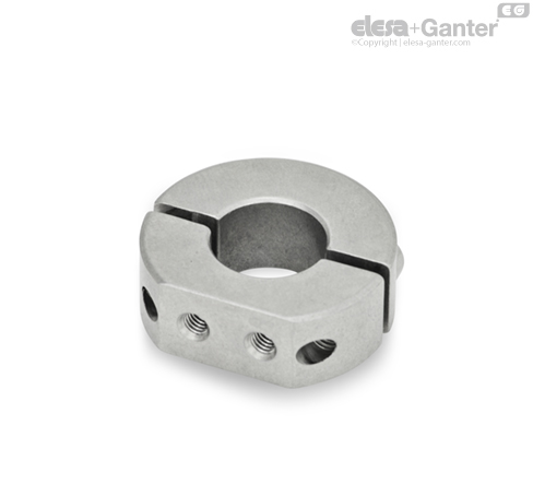 Mit den Anbau-Gewindebohrungen der geteilten Stellringe GN 7072.1 können Sensorhalter GN 7062.10 oder andere Elemente wie z. B. Schalthebel oder Nocken an Wellen und Achsen befestigt werden.