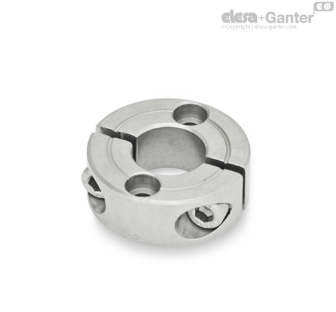 Mit geteilten Stellringen GN 7072.2 werden z. B. Achsen an Gehäusen befestigt oder Räder und Scheiben auf Wellen montiert.