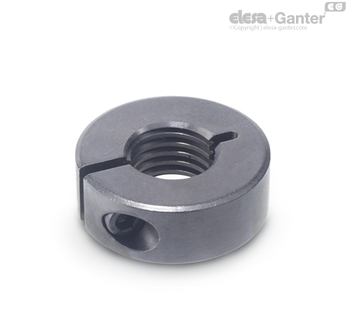 Gewindeklemmringe GN 706.3 entsprechen bezüglich ihrer äußeren Abmessungen den geschlitzten Stellringen GN 706.2