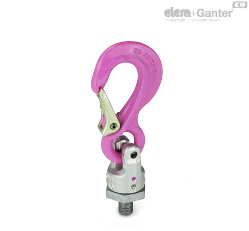 Die Lasthaken GN 5862 sind drehbar kugelgelagert. Durch den beweglichen Haken nehmen sie Lasten in jeder zugelassenen Zugrichtung auf.