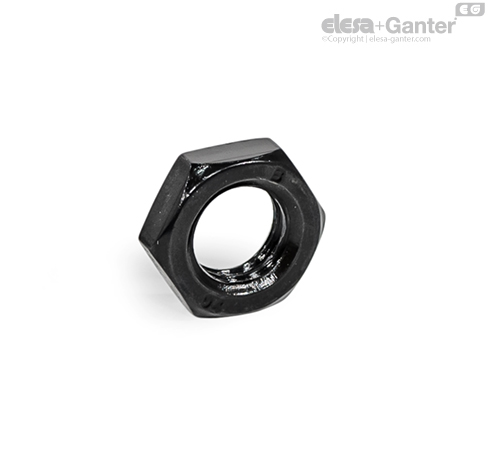 Durch die flache Ausführung sind die Sechskantmuttern optimal auf kürzere Gewinde abgestimmt. Bei der Montage von Rastbolzen schränken sie den Verstellweg nur minimal ein, was insbesondere beim Kontern von zwei Muttern von Bedeutung sein kann.