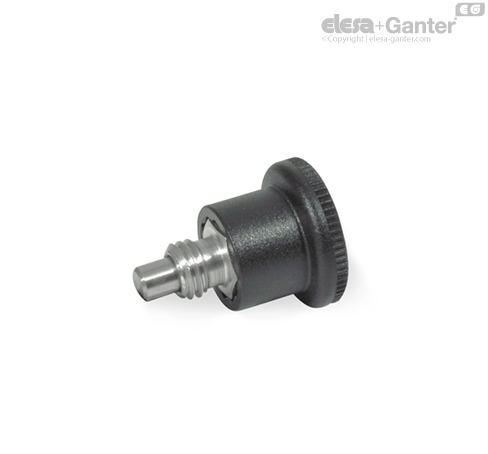 Basierend auf dem Prinzip der |s|_GN 822 Miniraster, vereinen sie deren vorteilhafte Bauart mit einer lückenlosen Reihe aller gängigen Größen an Bolzen und Gewinden. Damit stellen sie eine preisgünstige Alternative zu GN 607/ GN 607.1 Rastbolzen der entsprechenden Größen dar. Zur Montage wird der Miniraster zunächst mit Hilfe der Knopfrändelung eingeschraubt, bei gezogenem Raststift wird der Sechskant frei, um mit einem Gabelschlüssel fest anziehen zu können.
