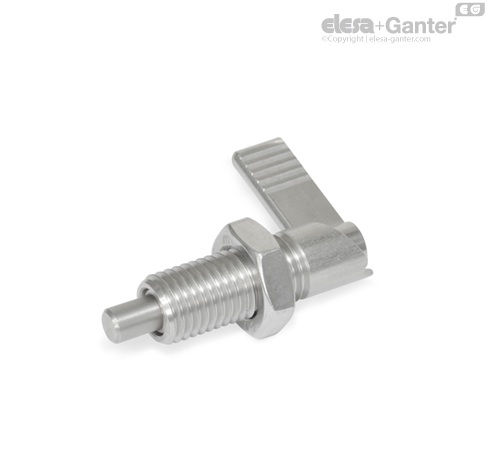 Die Rastkerbe bei Edelstahl-Rastriegeln GN 721.6 bewirkt, dass der Raststift in der eingezogenen Position gehalten wird.