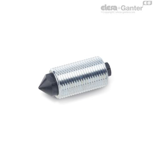 Federelemente GN 513 sind Universaldruckstücke, die zur Arretierung ebenso eingesetzt werden können, wie zur Positionierung oder zum Klemmen mit Federkraft. Dabei kann der Federbolzen als Druck- oder Zugstift benutzt werden, er ist gegen Verdrehen gesichert.