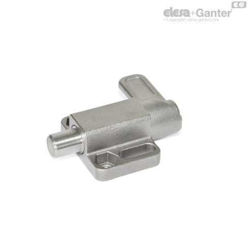 Bei Edelstahl-Federriegeln GN 722.3 wird der Raststift über die Kurve der Führung durch eine 180°-Drehung des Riegels eingezogen. Die Rastkerbe am oberen Ende der Kurve bewirkt, dass der Riegel gehalten wird wenn der Raststift zeitweise nicht vorstehen soll. Die Ausführungen ZB und SW sind für Anwendungen im Stahlbau konzipiert, in Edelstahl A4 ist der Einsatz in besonders aggressiven Umgebungen möglich.