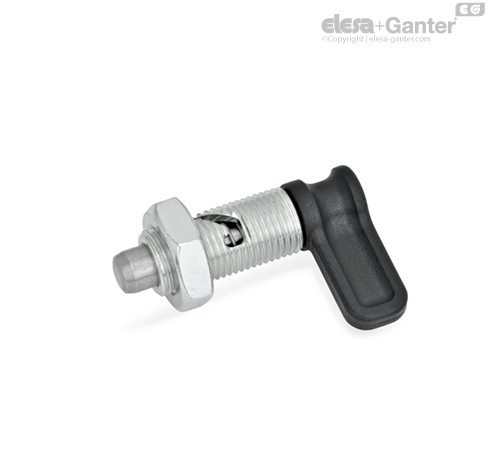 Kurven-Rastriegel GN 712 werden eingesetzt, wenn der Raststift zeitweise nicht vorstellen soll. Durch Drehen des Riegels um 90° bzw. 120° entgegen dem Uhrzeigersinn. Der Raststift über eine Führungskurve eingezogen. Der Raststift über eine Führungskurve eingezogen.