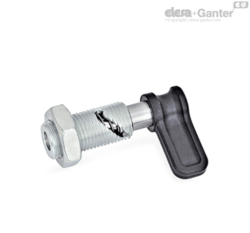 Kurven-Rastriegel GN 712.1 werden eingesetzt, wenn der Raststift zeitweise nicht vorstehen soll. Durch Drehen des Riegels um 90° bzw. 120° im Uhrzeigersinn wird der Raststift über eine Führungskurve ausgefahren. Durch Drehen des Riegels um 90° bzw. 120° im Uhrzeigersinn wird der Raststift über eine Führungskurve ausgefahren.