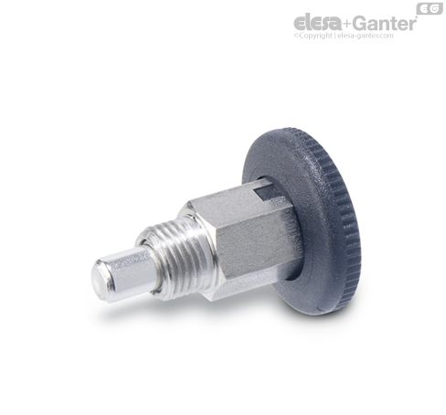 Die Form C mit Rastsperre wird eingesetzt, wenn der Raststift zeitweise nicht vorstehen soll. Hierzu wird der Knopf nach dem Einziehen des Raststiftes um 90° gedreht. Durch eine Rastkerbe wir der Knopf in dieser Position gehalten.