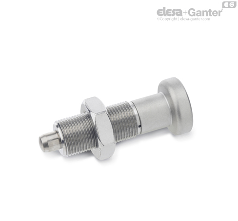 Rastbolzen GN 613 in der Form G bzw. GK mit Gewindezapfen sind für Anwendungsfälle gedacht, wo ein Sonderknopf erforderlich ist bzw. die Betätigung des Rastbolzens nicht in der üblichen Weise von Hand erfolgt.