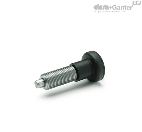 Rastbolzen GN 613 in der Form G bzw. GK mit Gewindezapfen sind für Anwendungsfälle gedacht, wo ein Sonderknopf erforderlich ist bzw. die Betätigung des Rastbolzens nicht in der üblichen Weise von Hand erfolgt.