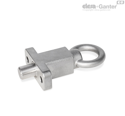 Bei Rastbolzen GN 722.5 wird der Raststift über den Zugring / Riegel betätigt. Dies erfolgt von Hand, alternativ per Seilzug oder mittels einer verlängerten Zugstange mit Haken. Die Ausführung ST ist für Anwendungen im Stahlbau konzipiert, die Edelstahlausführung A4 ermöglicht den Einsatz in besonders aggressiven Umgebungen.