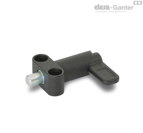 Rastriegel GN 612.9 werden eingesetzt, wenn der Raststift zeitweise nicht vorstehen soll. Durch Drehen des Riegels um 180° wird der Raststift eingezogen. Die Rastkerbe ermöglicht ein sicheres Positionieren.