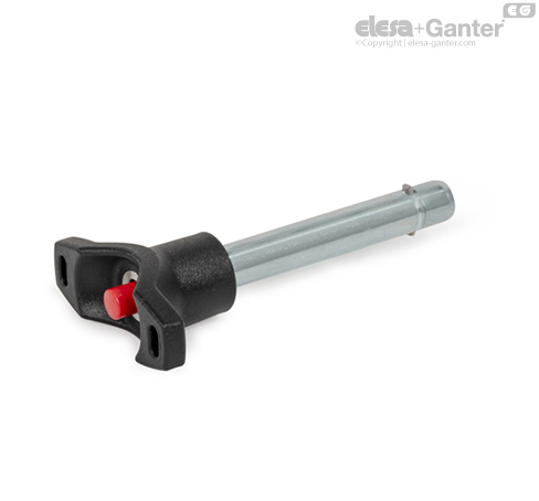 Steckbolzen GN 114.7 mit Axialsicherung werden zum schnellen Fixieren, Verbinden und Sichern verschiedener Bauelemente eingesetzt. Eine typische Anwendung sind Lagerbolzen, die häufig montiert und wieder demontiert werden müssen.