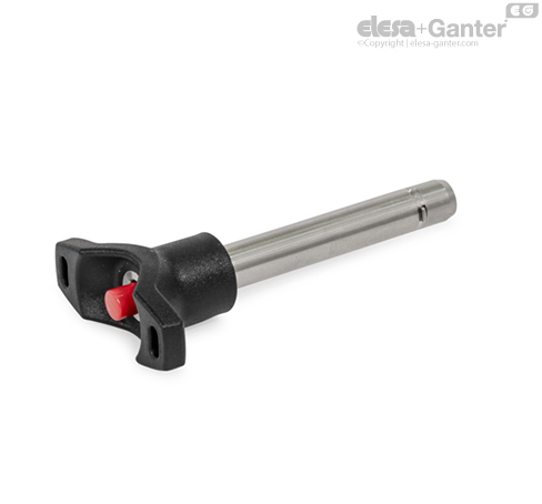 Steckbolzen GN 114.8 mit Axialsicherung werden zum schnellen Fixieren, Verbinden und Sichern verschiedener Bauelemente eingesetzt. Eine typische Anwendung sind Lagerbolzen, die häufig montiert und wieder demontiert werden müssen.