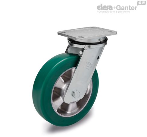 Geeignet für schwere industrielle Anwendungen unter schwierigen Einsatzbedingungen wie Seitenaufprall und hohe Geschwindigkeiten. Die Form von Polyurethan-Räder sorgen für eine hervorragende Gleitfähigkeit und Elastizität, hohe Verschleiß-und Reißfestigkeit. Weitere Informationen siehe RE.F2.
