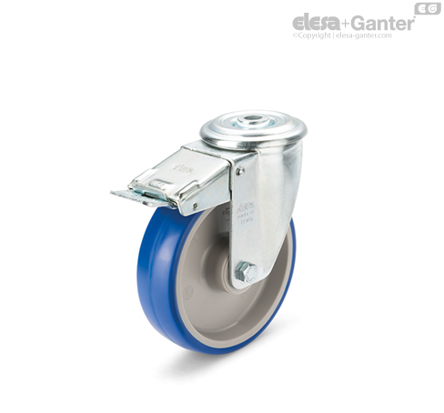 Lenkrolle und zentraler Durchgangsbohrung, mit Bremse, Stahl