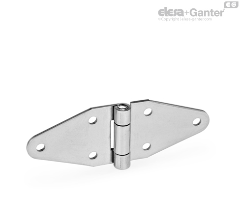 Spitzgeschnittene Edelstahl-Blechscharniere GN 1364 zeichnen sich durch ihre kompakte und universell einsetzbare Dimensionierung sowie ihre „formschöne“ Gestaltung aus. Die verwendeten Werkstoffe ermöglichen zudem den Einsatz in aggressiven Umgebungen.