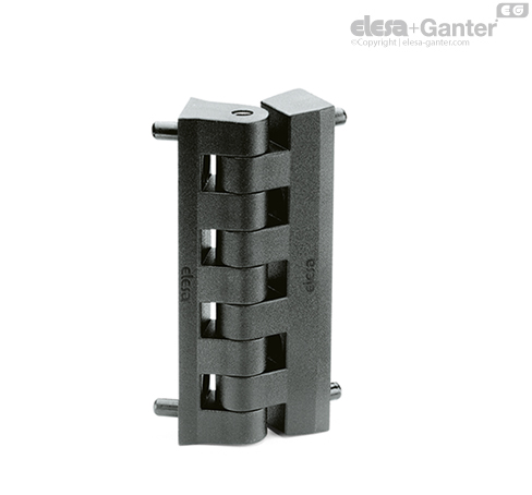Bohrungen für M6 Senkschrauben und Stifte für eine genaue Positionierung des Scharniers.
