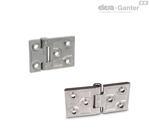 Horizontal verlängerte Schwerlastscharniere GN 237.3 sind für den Einsatz unter erschwerten Bedingungen ausgelegt. Vergrößerte Befestigungsabstände und die zusätzliche Montagebohrung verbessern die Krafteinleitung in die Umgebungskonstruktion. Die Scharnierstifte sind formschlüssig verpresst und erlauben somit den Einsatz der Scharniere bei starken Vibrationen und Erschütterungen.