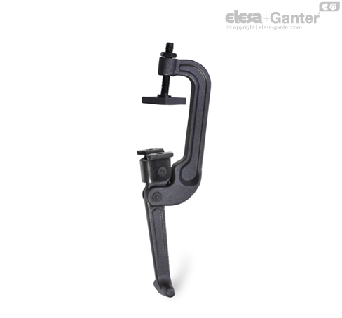 Wenn der Verbleib der Gegenplatte am zu spannenden Gegenstück nicht erwünscht ist, eignet sich der Spannbügel z. B. alternativ auch zur Aufnahme von GN 802- Andrückschrauben, die über eine pendelnde Auflage verfügen.