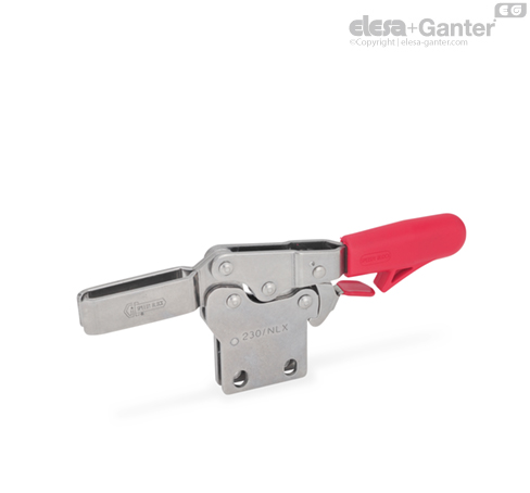 Die Spannung erfolgt nach dem Kniehebelprinzip, Spannhebel und Spannarm bewegen sich dabei in entgegengesetzer Richtung. Die geringe Bauhöhe in der Spannstellung zeichnet diese Spanner zusätzlich aus.