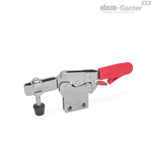 Die Form NL mit offenem Spannarm nimmt über die Flankenscheiben eine anwendungsspezifische Schraube auf, bei der Form NLC ist zusätzlich eine Andrückschraube mit Gummi-Druckstück im Lieferumfang enthalten.