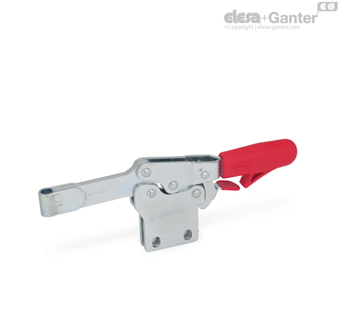 Die Spannung erfolgt nach dem Kniehebelprinzip, Spannhebel und Spannarm bewegen sich dabei in entgegengesetzer Richtung. Die geringe Bauhöhe in der Spannstellung zeichnet diese Spanner zusätzlich aus.