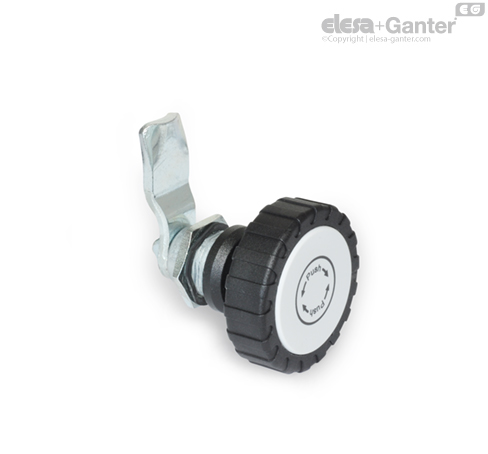 Verriegelungen GN 115.9 sind mit einer Push to Turn-Sicherheitsfunktion ausgestattet. In beiden Endstellungen ist die Drehachse mit dem Riegel arretiert. Die Drehung um 90° ist nur möglich, wenn das Bedienelement mit dem zugehörigen Steckschlüssel gedrückt und dadurch die Arretierung per Sicherungsstift aufgehoben wird. So wird der Riegel zuverlässig gegen selbsttätige oder durch Vibrationen verursachte Bewegung geschützt.