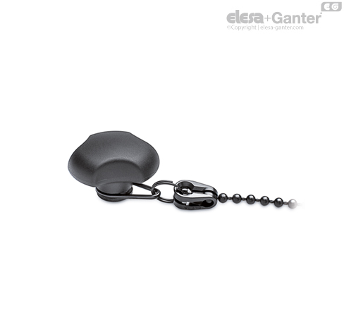 Die an dem Sterngriff befestigte elastisches Ringöse ist frei drehbar. Die Kugelkette ist durch einen doppelten Stahl-Ring mit der elastisches Ringöse verbunden.