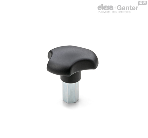 Der Sechskantschaft ermöglicht ein Festziehen des Dreisterngriffs mittels Gabelschlüssel.