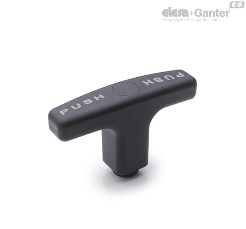 Glasfaserverstärkter Kunststoff Thermoplast (Polyamid PA), schwarz, matt mit "PUSH" Aufdruck in grau. Vermeiden Sie den Kontakt mit Lösungsmitteln, Alkohol oder Reinigungsmittel.