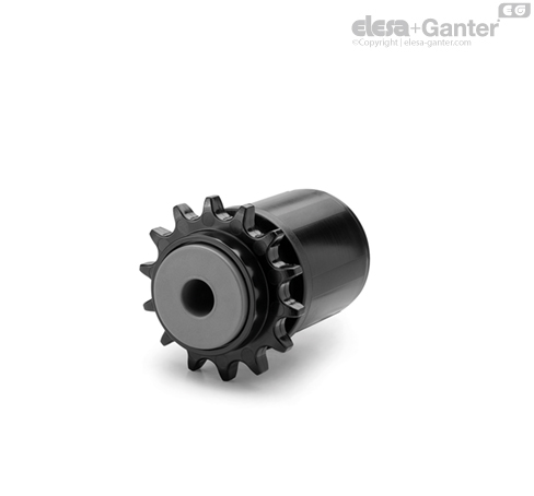 Die Wälzeinheit für GVF Friktionsförderrollen werden an den Enden der Förderrollen angebracht(Abb. 1). Antriebsrad mit 14 Zähnen für die Rollenkette vom Typ DIN 8187-08-B1.