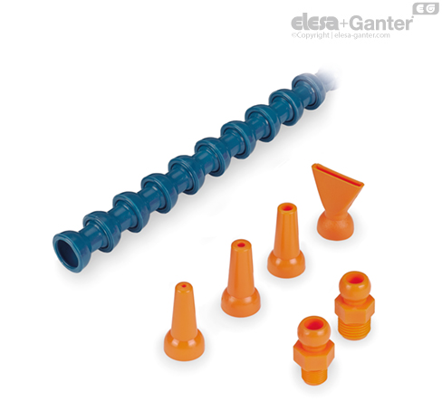 Segmentschläuche, Sprühdüsen und Verbindungsstücke aus Materialien, die für den Kontakt mit Lebensmitteln geeignet sind (FDA CFR.21 und EU 10/2011).