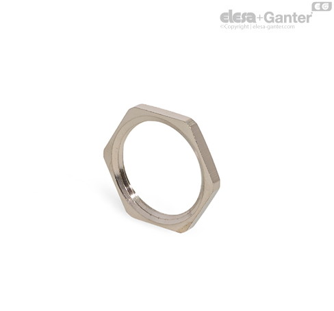 Mit Befestigungsmuttern GN 62444.1 werden Kabelverschraubungen, Reduzierungen oder Verschlussschrauben in Durchgangsbohrungen von Gehäusen befestigt.