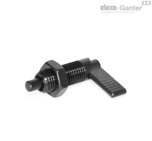 Bei Rastriegeln GN 721 wird der Raststift durch eine 180°-Drehung des Riegels(auf Anschlag) eingezogen.