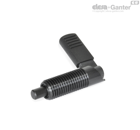 Bei Rastriegeln GN 721 wird der Raststift durch eine 180°-Drehung des Riegels(auf Anschlag) eingezogen.